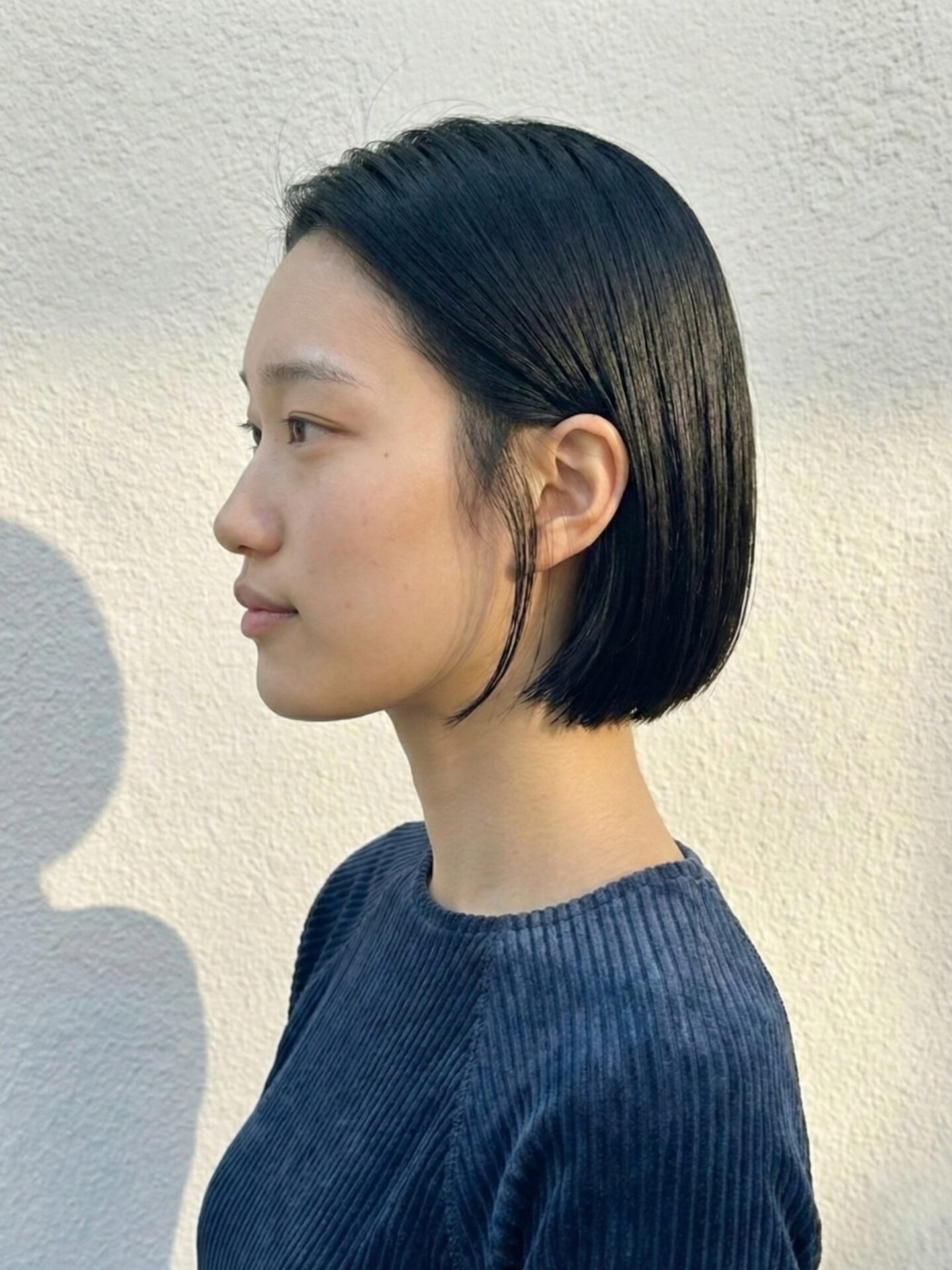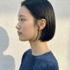 - 顔まわり: 前髪を作らず(または長めのセンターパート)、おでこを出すことで、黒髪でも重さを感じさせない、知的でモードな印象に仕上げました。