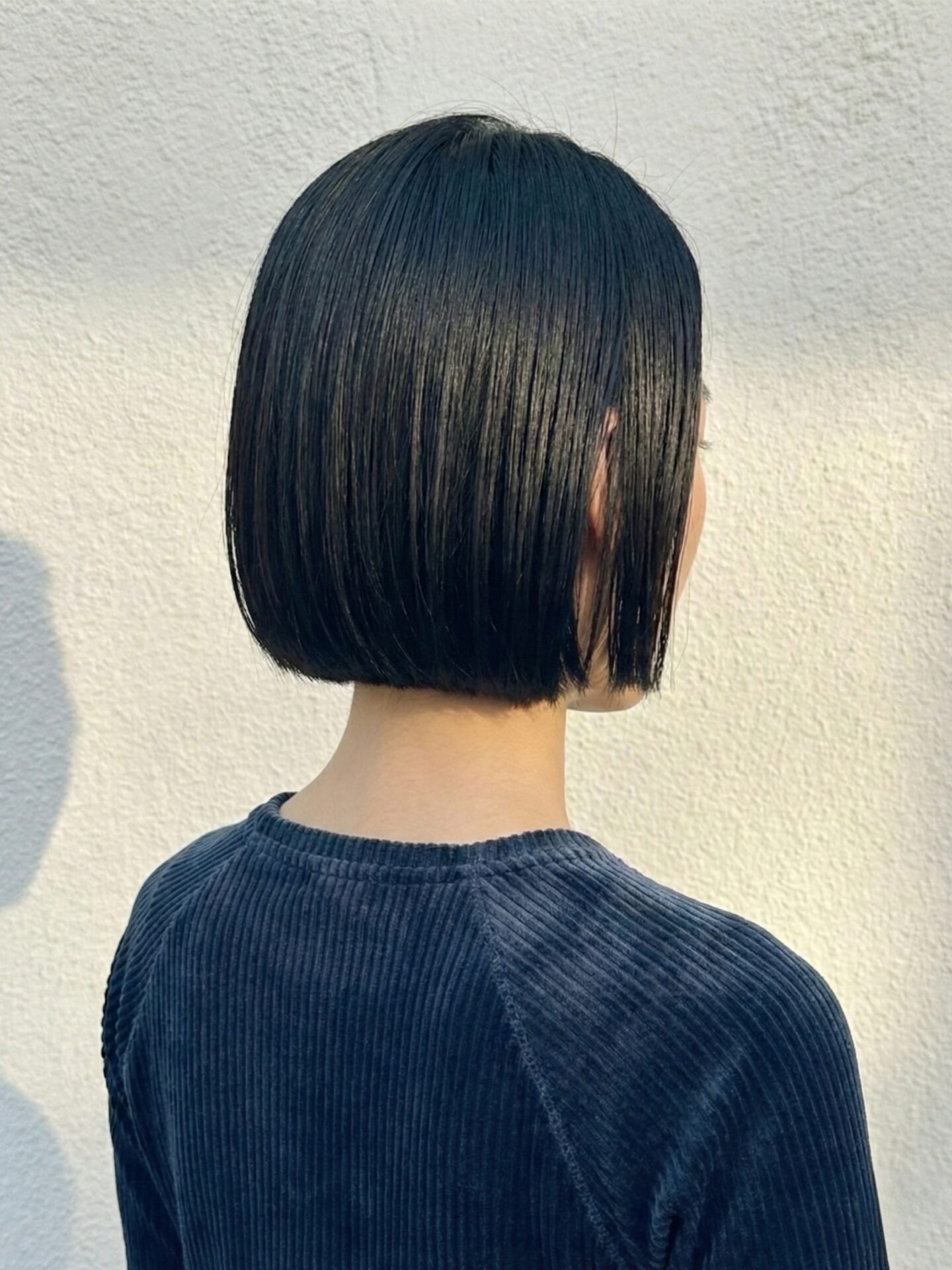 - 質感調整: ぱつっとしたラインは残しつつ、内側の毛量を調整して「こけし」状態を回避。オイルを馴染ませた時に、美しい束感が出るように隙間を作っています。