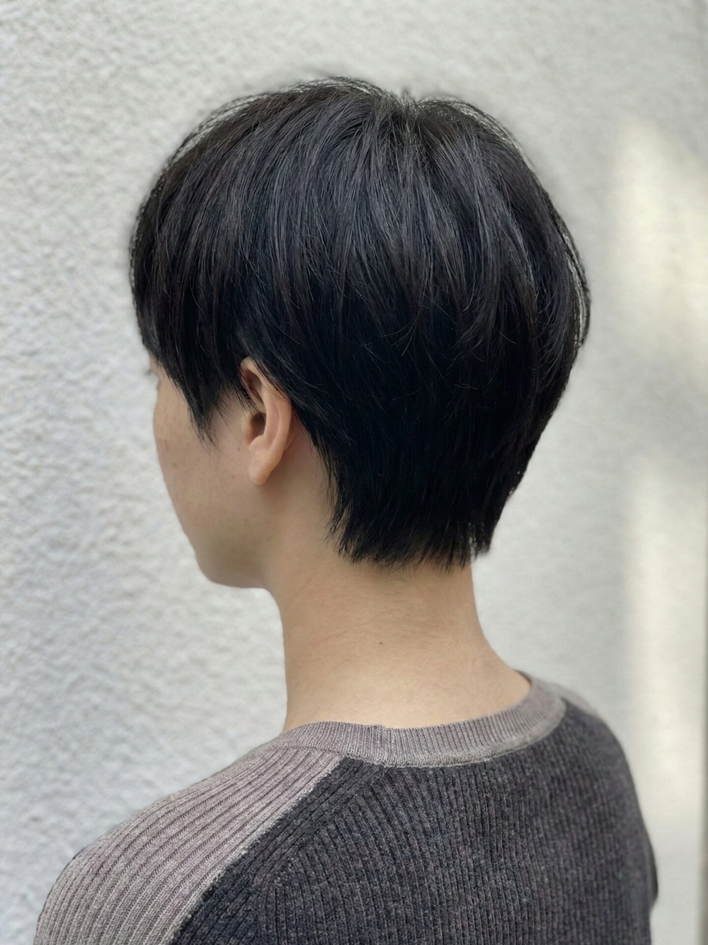 - 顔まわり: 前髪からサイドにかけてマッシュラインで繋げつつ、耳に掛けられる長さを残しました。これにより、スタイリング次第でクールにもナチュラルにも表情を変えられます。